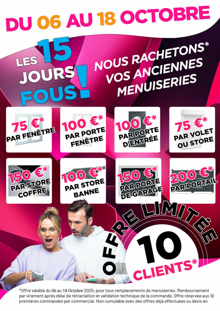 Fenêtres, portes, volets, portails… Profitez d’offres exceptionnelles du 6 au 18 octobre en Île-de-France.